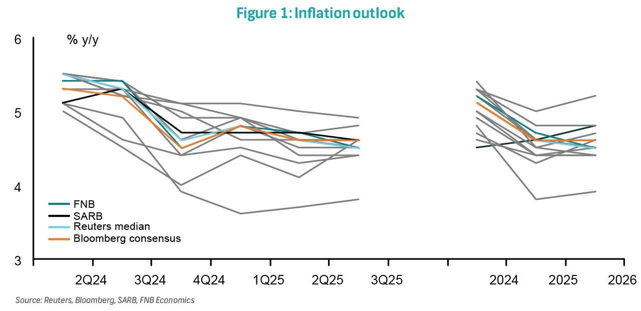 A day after the national elections, the Monetary Policy Committee (MPC) will be announcing their decision on interest rates. Much like the previous meeting, we expect no major forecast changes and for interest rates to remain unchanged. This aligns with most analyst expectations, and interest rate cuts are only anticipated from 2H24. However, there is less agreement on the projected cutting cycle as there are several moving parts to consider: a conservative approach by the Fed, upside inflation risk, and the pursuit of a lower inflation target for South Africa (SA), as discussed last week.