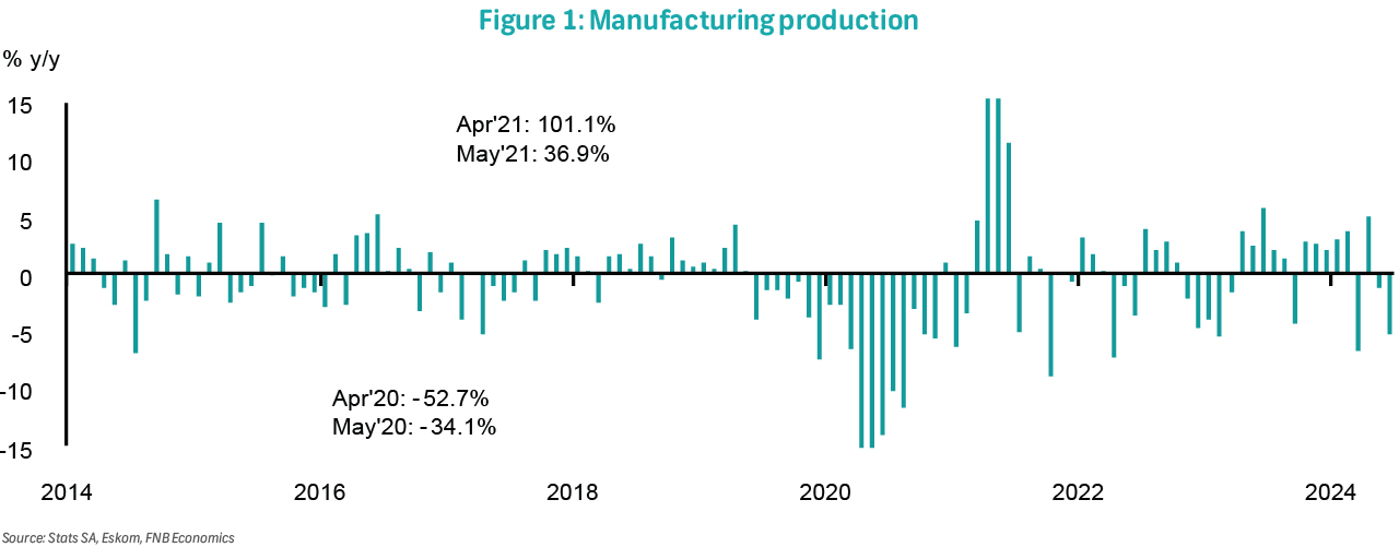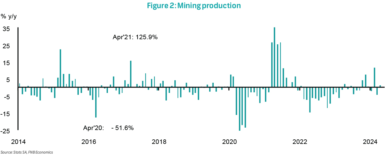 On Tuesday, data on mining production for June will be released. In May, mining production (not seasonally adjusted) was flat (0%) compared to May 2023. On a seasonally adjusted basis, output fell by 0.6% month-on-month, partially offsetting the 0.8% increase recorded in April. Over the three months to May, mining output declined by nearly 1.0%, indicating that the sector may have continued to weigh on growth in 2Q24. The upcoming June data will be crucial in providing a complete picture of the mining sector's contribution to GDP growth.