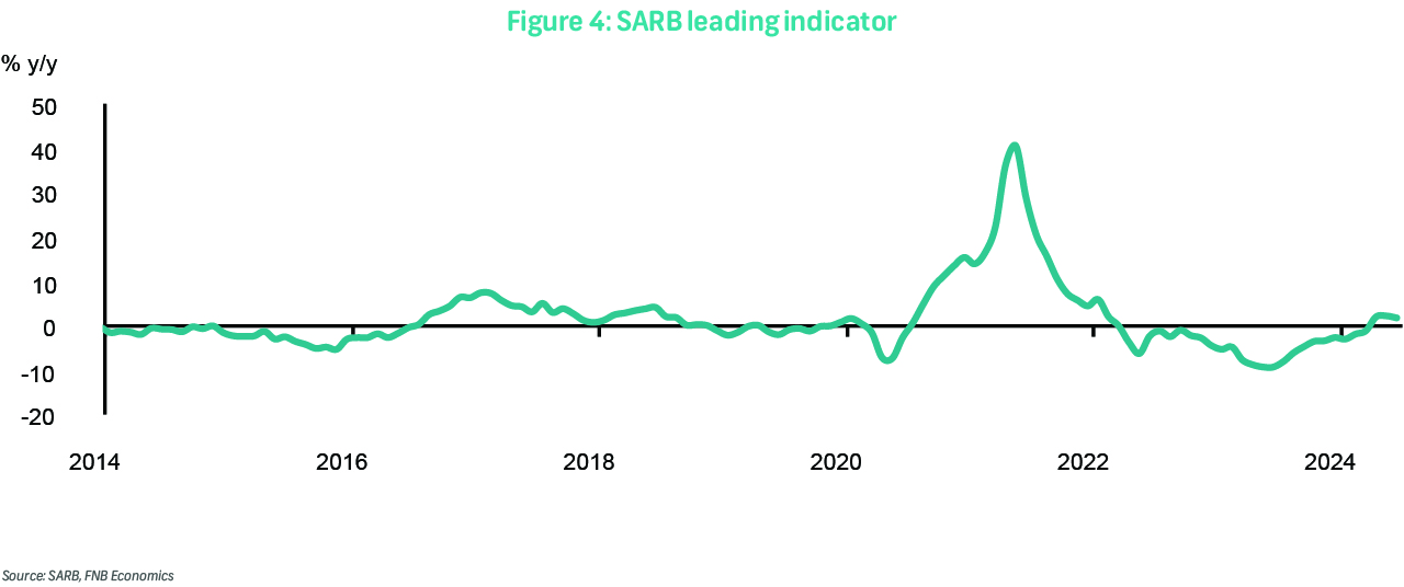Headline consumer inflation slowed to 4.6% y/y in July, down from 5.1% in June, despite monthly pressure of 0.4%. Core inflation eased to 4.3% y/y, from 4.5% previously, but also reflected monthly pressure of 0.3% from utility services. Electricity price inflation was 11.0% m/m and 12.1% y/y. Average fuel prices fell by 3.6% m/m but were up by 4.5% y/y, down from 7.6% previously. Food and non-alcoholic beverages inflation continued easing to 4.5% y/y from 4.6% previously. Slowing global inflation, stable oil prices, a less depreciated rand, and subdued domestic demand remain supportive to lower inflation this year. We anticipate that inflation will fall below the 4.5% target over the next few quarters but lift at the turn of next year as base effects become less favourable. Nevertheless, this trend should be supportive of headline inflation averaging below 5.0% this year and potentially below 4.5% next year. The risk, however, is that geopolitical tensions flare up, lifting the risk premium on commodity prices and keeping logistical costs elevated.