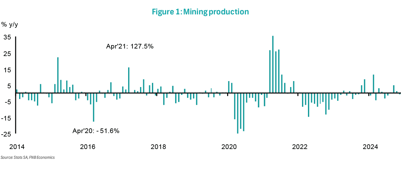 Mining production (not seasonally adjusted) contracted by 0.9% y/y in November 2024, after expanding by a downwardly revised 1.1% (previously 1.4%) in October. Excluding gold, mining output expanded by 0.7% y/y over the same period. Monthly seasonally adjusted output, which is critical for quarterly GDP calculations, declined by 0.2% after contracting by 2.8% (previously -3.0%) in October. In the three months to November, mining output was up by 4.0% - suggesting a potential boost to 4Q24 GDP growth, pending the December data print.
