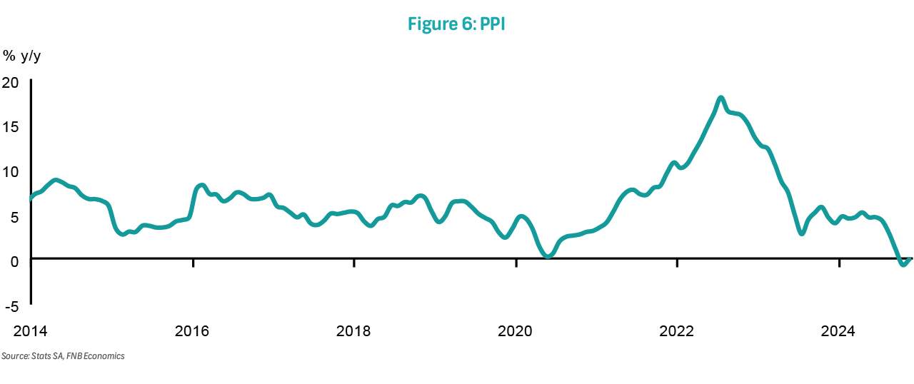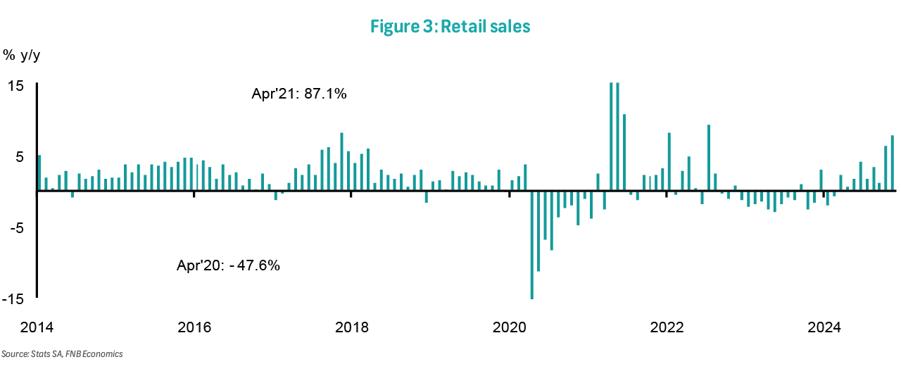 After a solid 6.2% y/y in October, retail sales accelerated further to a robust 7.7% growth in November, significantly outpacing the Reuters consensus expectation for a 5.5% increase. On a month-on-month basis, volumes increased by 0.8%, albeit down from a 1.6% increase in October. These numbers bode well for 4Q24 GDP growth and reflect consumer spending benefits from the two-pot system pension withdrawals, the declining inflation trajectory, particularly fuel costs, as well as improved consumer sentiment. Year-to-date, retail sales have increased by 2.4% compared to the same period last year, the highest level since 2019. We expect this momentum to continue into 2025.