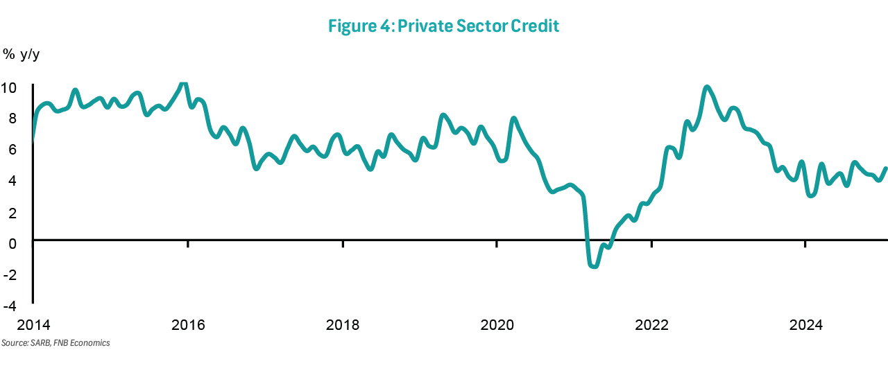 Within household credit, unsecured lending continued to struggle, with loans and advances falling by 1.6%y/y. This offset the steady growth in credit card usage, which remained strong at 8.8%. Asset-backed credit was supported by car financing, though growth slowed slightly to 6.2% from 6.5%. Mortgage advances remained stagnant at 2.3%. On the corporate side, general loans and advances experienced a more significant slowdown, decreasing to 4.2% from 5.2%. Commercial car and real estate financing remained relatively stable recording 5.2% and 5.3%, respectively.