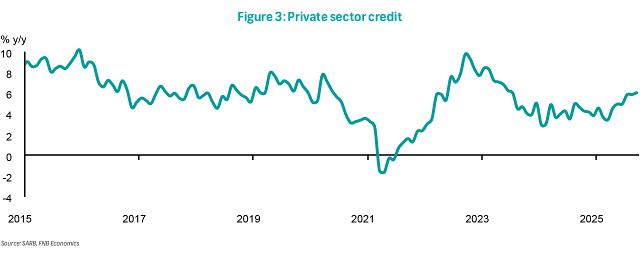 Private Sector Credit Extension (PSCE) growth rose to 6.0% y/y in September up from 5.9% in August. Household growth remained subdued at 2.9%, slightly lower than the 3.0% recorded previously. In contrast, corporate credit increased to 8.6% in September from 8.3% in August. The main contributors to this growth were general loans and advances, which rose to 13.9% from 13%, vehicle asset finance, which climbed to 9.9% from 8.9%, and credit card advances, which saw a significant jump to 6.7% from 1.2%. In the household segment, changes from August to September were mostly minor. Overdrafts, while still negative, showed a slight improvement, moving from -8.2% in August to -7.2% in September. General loans and advances increased to 0.4%, up from 0.1% in the previous month. Mortgage advances also edged higher, rising to 2.2% compared to 2.1% in August. Households are showing a cyclical recovery; however, monetary policy remains restrictive and ultimately weighing on lending appetite and credit uptake.