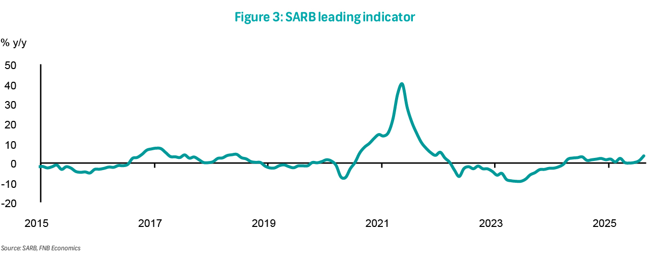 SA's economy started the year on the back foot, with weak industrial activity. Fortunately, 2Q25 GDP growth surprised to the upside and high-frequency indications for the 3Q25 performance are encouraging. In line with this, the SARB has revised its 2025 forecast to 1.3%, slightly up from 1.2%, with growth projected to approach 2% over the forecast horizon. Consumer spending will remain the bedrock for activity, with growth upheld by wealth effects and rising disposable incomes. What has been less forthcoming is capacity-driven investments, but with traction in reforms, these are expected to recover from 2H26. The SARB assesses risks to the growth outlook as broadly balanced.