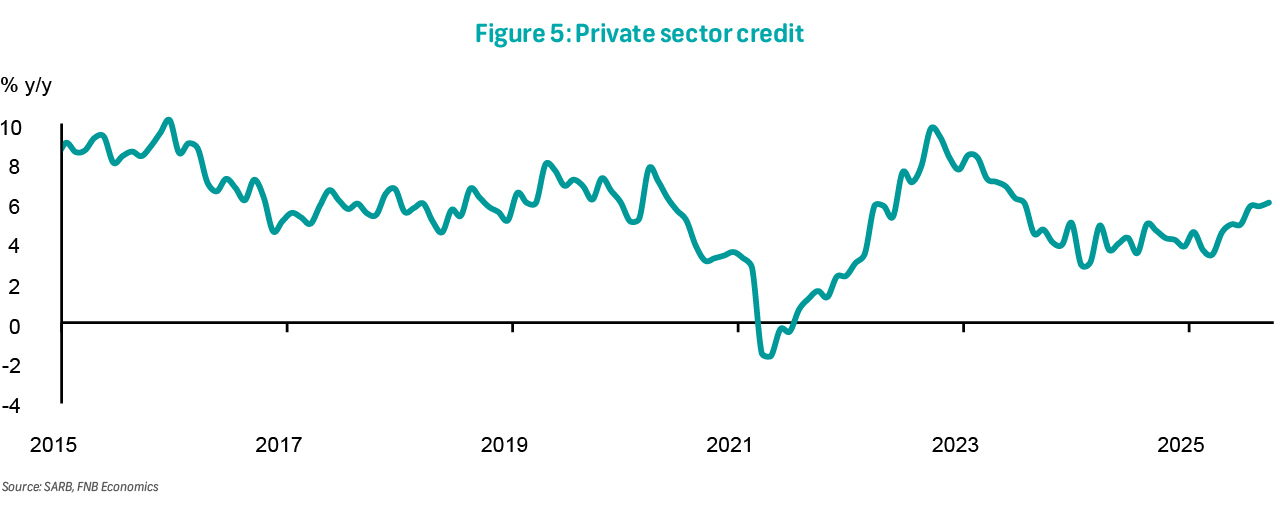 Reforms should also translate to a lower cost of doing business, further sustaining softer inflation. In the meantime, it is paramount that inflation expectations are guided lower. Without the benefit of rand strength and import price compression, administered price pressures and sticky wage-setting behaviour will reduce the odds of downside surprises to inflation forecasts. For now, the SARB has made modest downward revisions to its near-term outlook and views risks as balanced.