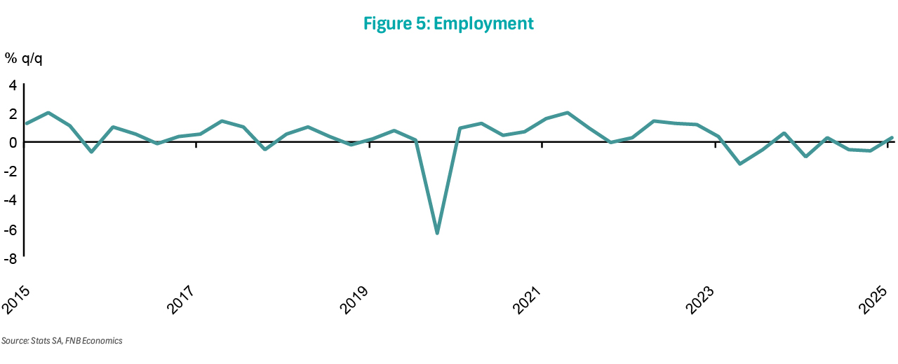 Also on Tuesday, the Quarterly Employment Statistics (QES) for 4Q25 will be published. In 3Q25, the QES showed that 29 000 (0.3% q/q) formal jobs were created. However, employment was down by 0.7% y/y (-79 000), with mostly full-time jobs lost. Job creation remains concentrated in public services and mining, while manufacturing and construction continue to shed jobs, and earnings growth is still largely driven by service-sector activity despite subdued hiring conditions. Gross earnings were up 3.2% y/y, still highlighting a faster recovery than employment.