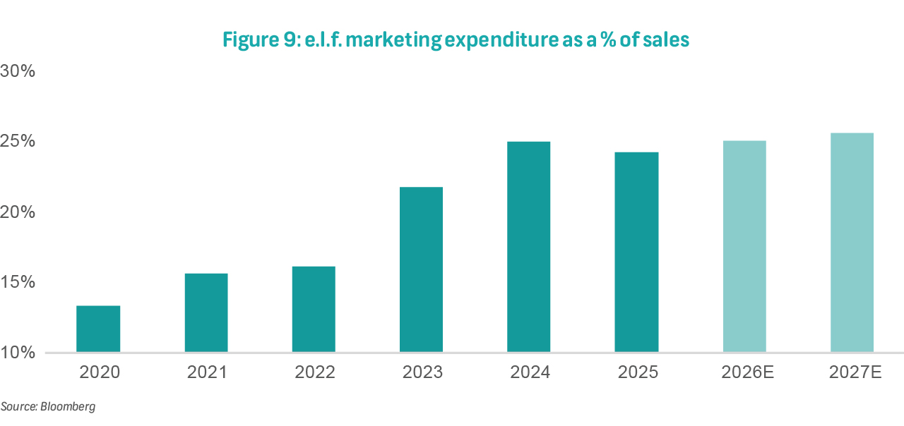 In May last year, e.l.f. announced the acquisition of influencer Hailey Bieber's rhode for $1 billion. The market reaction was positive at first and then turned negative when e.l.f. management released detailed rhode financials post its 2Q26 results in September. The financials were decent but cast doubt on the hefty acquisition price. Management clarified that revenue was soft for that specific quarter as new product launches were held back in anticipation of the launch of the range in Sephora towards the end of the reporting period. The rhode launch was ultimately the biggest ever for Sephora, by a notable 2.5 times, despite only 16 stock-keeping units (SKUs) being placed at the time.