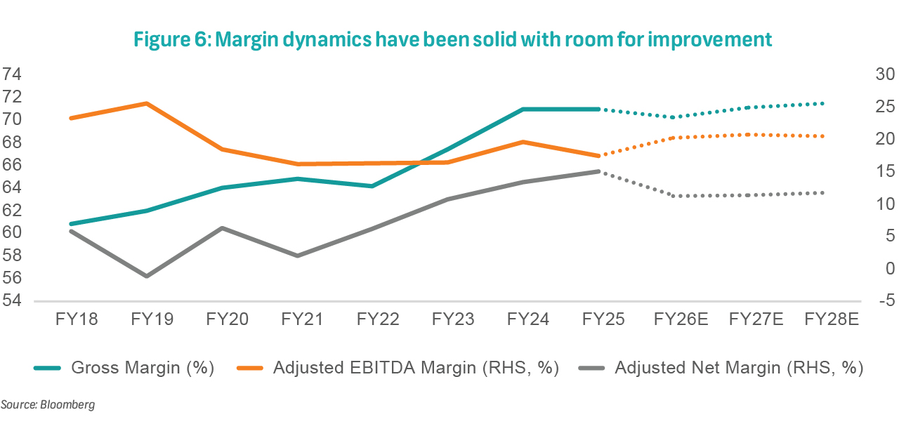 rhode is unique in that it has a limited product line and is deeply committed to its mission to produce "one of everything really great". The acquisition was immediately accretive and will be a major contributor for e.l.f. from FY27 onward. The company has sustainably high margins relative to competitors, with room for further expansion.