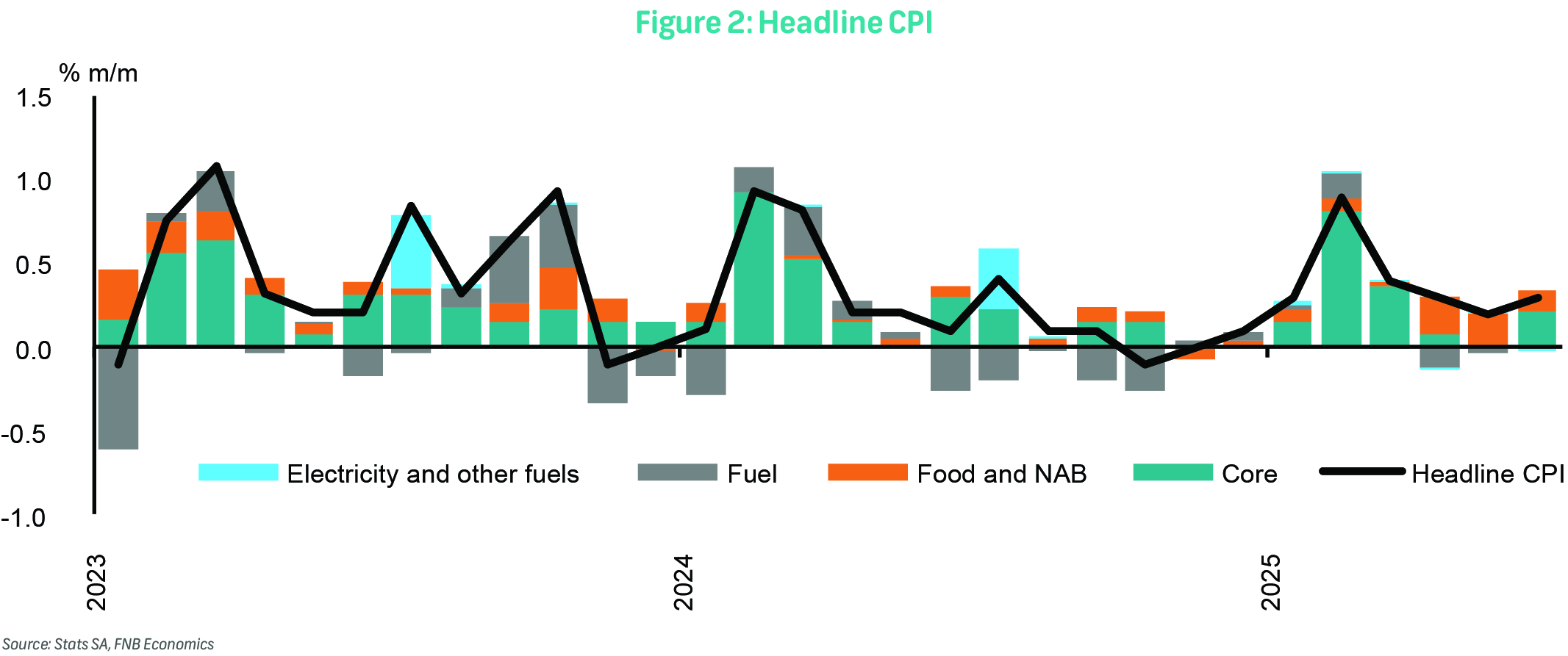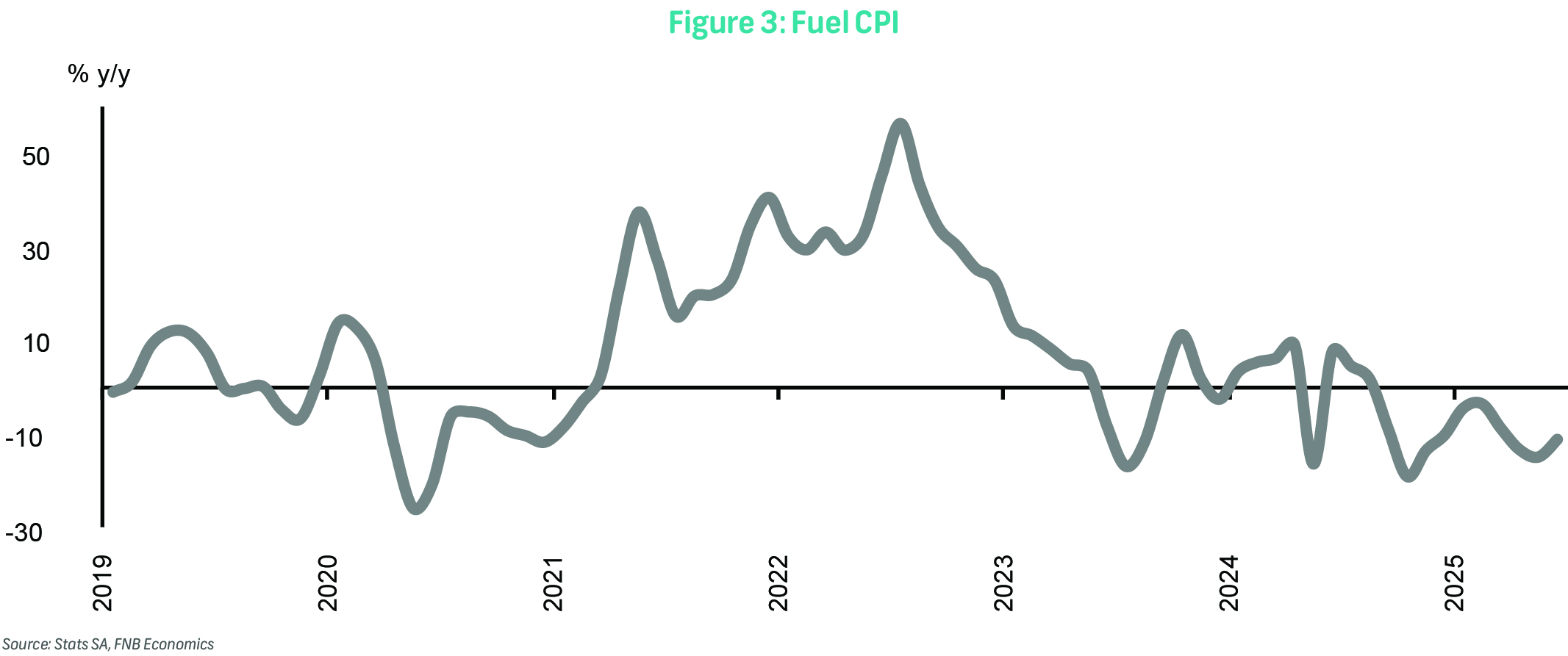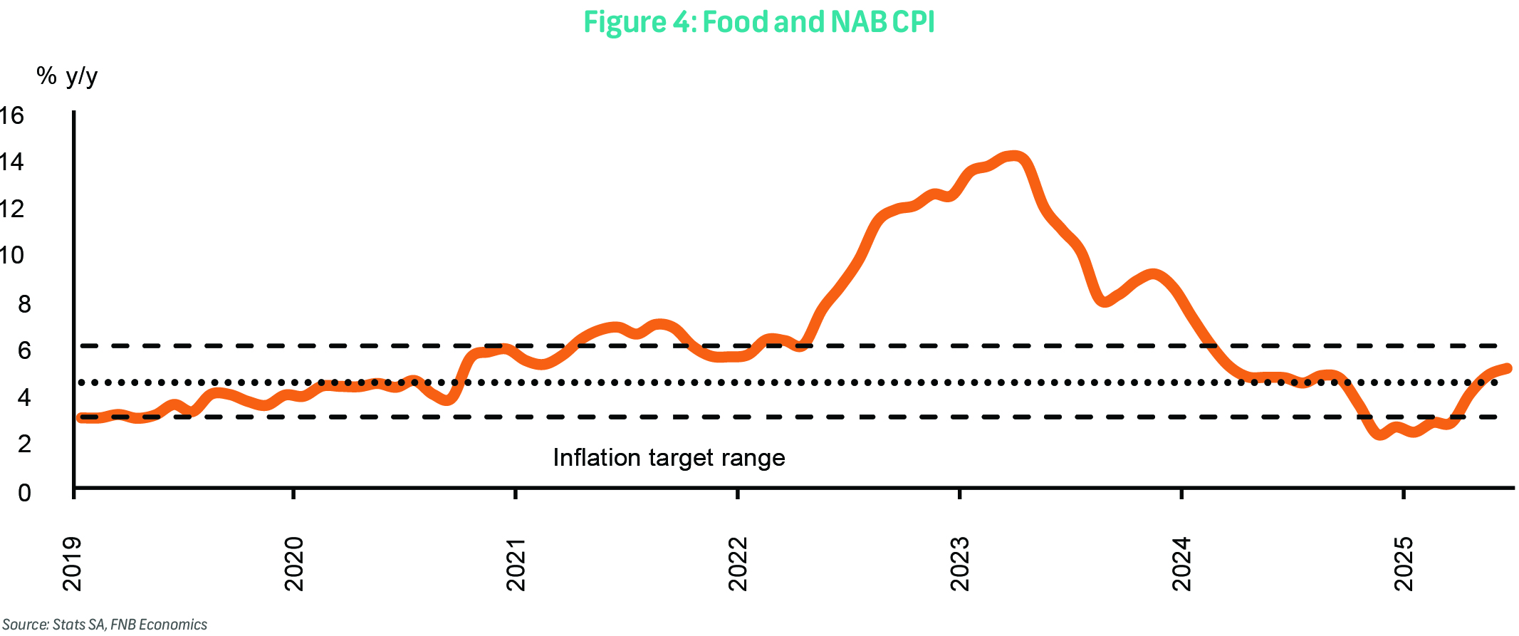 Positive base effects will also fade, assisting the lift in inflation over the coming months. That said, headline inflation should remain contained around the midpoint of the target range. Soft inflation will be supported by weak oil prices, a stronger rand, and a slow recovery in economic activity. We forecast headline inflation to average 3.5% this year.