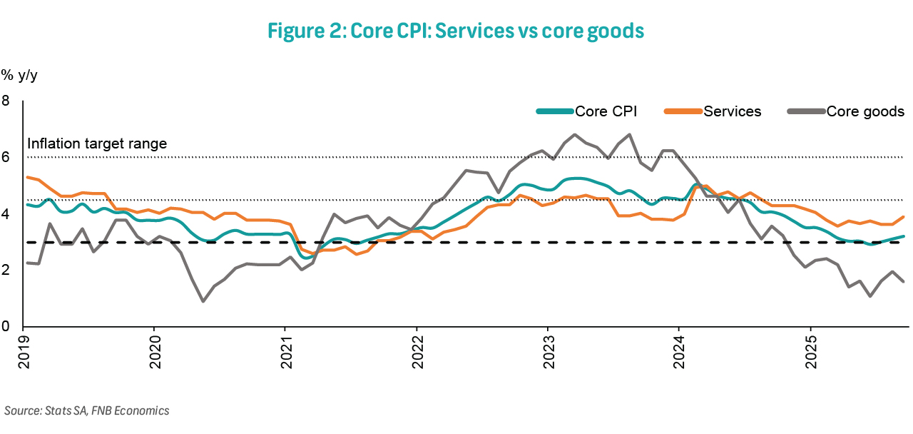 Considering this latest print, we see headline inflation lifting to 0.3% m/m and 3.8% y/y in October. This will reflect the hike in average fuel prices, which will push the year-on- year number out of deflationary territory. In addition, seasonal food price pressures could compound the upward pressure to headline inflation. That said, headline inflation should remain below 4% over the next year bar any negative shocks.