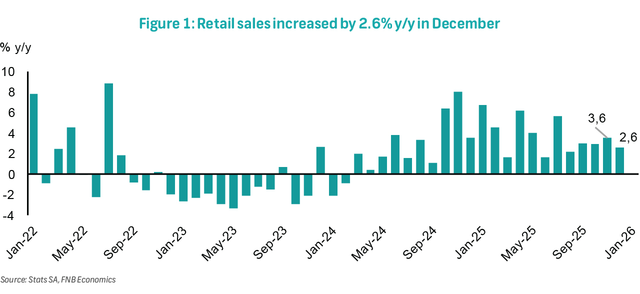 Retail sales growth decelerated to 2.6% y/y in December, down from 3.6% in November (revised from 3.5%), undershooting market expectations of a 3.1% expansion. On a month-on-month basis, sales volumes declined by 0.4%, partly reversing the 0.6% increase recorded previously. Nevertheless, quarterly volumes remained up by 0.8%, suggesting another positive contribution to 4Q25 GDP growth. For 2025, retail sales grew by 3.7% y/y. Excluding the pandemic-induced data disruptions in 2021, this represents the fastest pace of growth since 2012, reflecting an improving consumer environment.