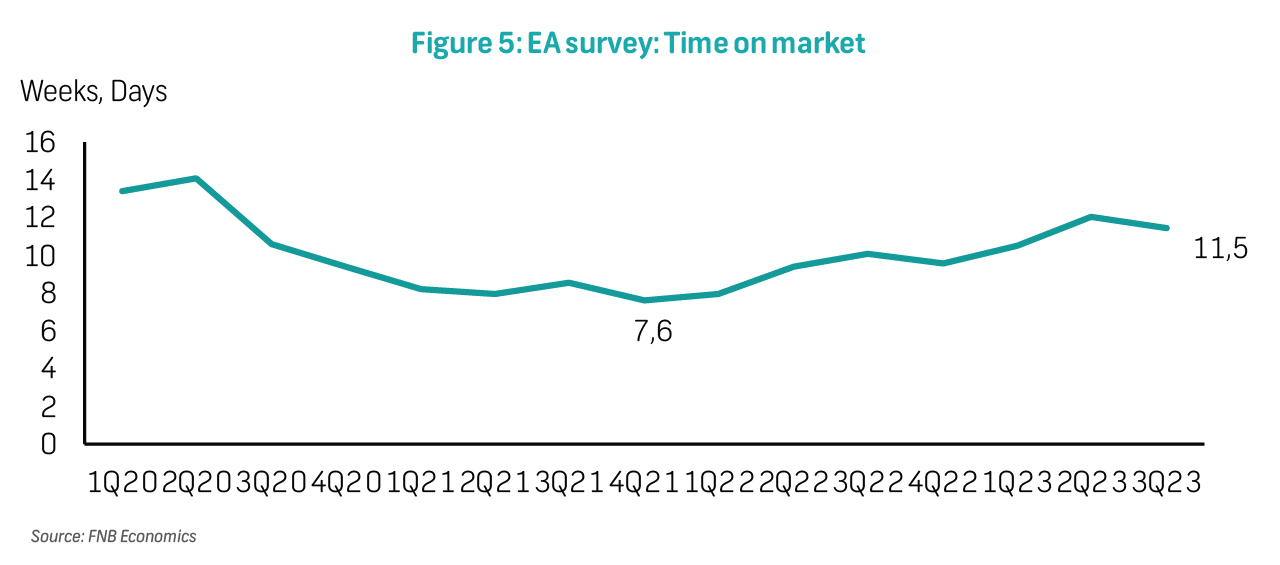 Correspondingly, agent expectations for the housing market showed some optimism in 3Q23, with 50% of respondents expecting an increase in activity in the next three months, compared to 17% in 2Q23. Factors cited for this optimism include expectations that interest rates have peaked as well as the customary increase in activity during the summer months. Less severe load-shedding in recent months has also boosted sentiment in the market.