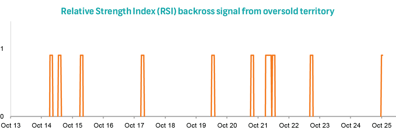Fading downside momentum, reflected by a rising Moving Average Convergence Divergence (MACD) histogram and an upward-turning Coppock Curve, suggests weakening selling pressure and improving long-term sentiment.
