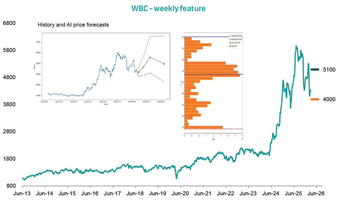 An AI-driven multi-horizon price forecasting framework also supports a bullish bias as its expected price path trends higher across horizons (see the larger insert on the main chart). The model's forecast and widening upper band indicate improving return potential, while the lower band defines risk if key support levels fail.